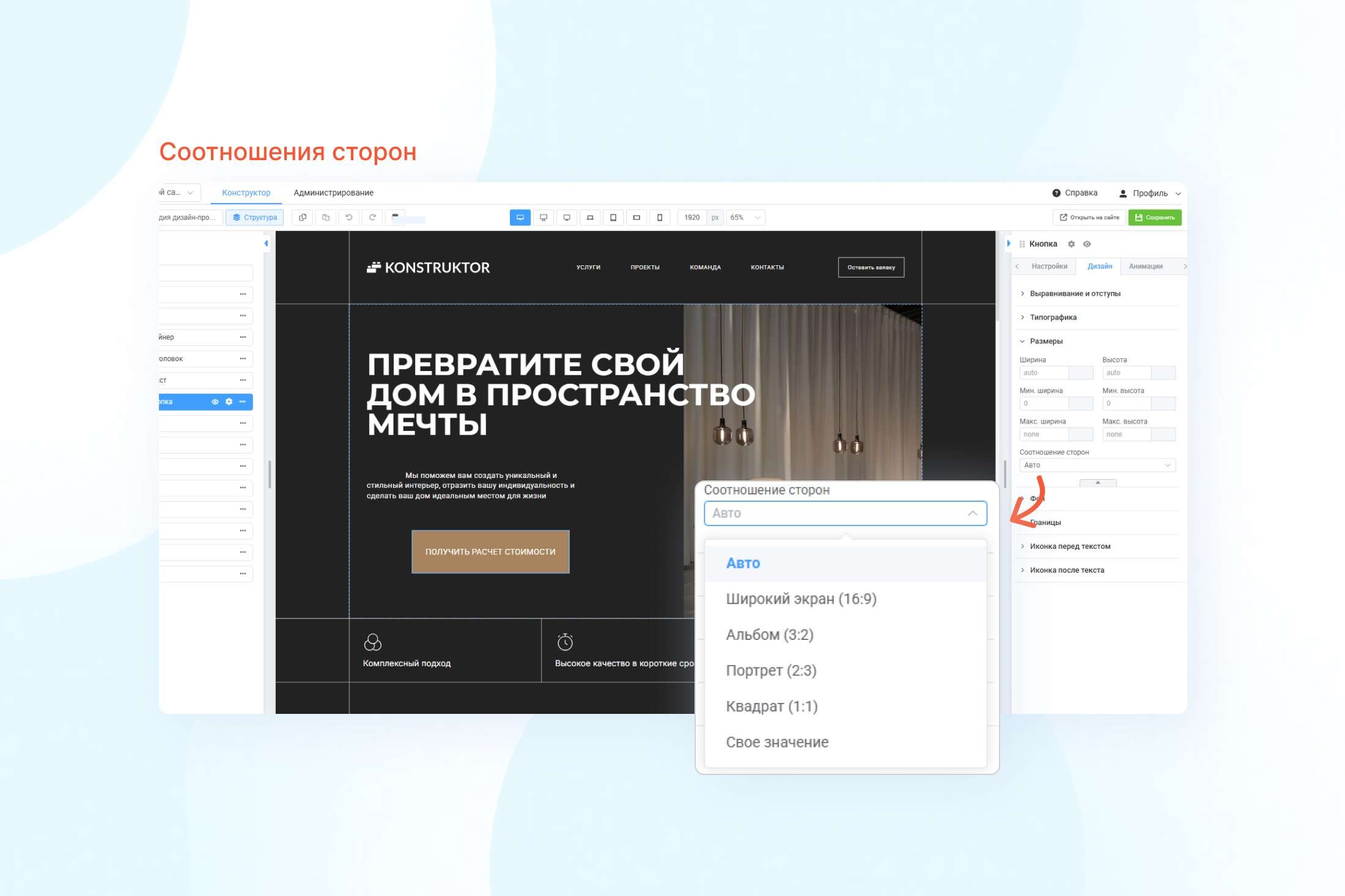 Управлять размерами и соотношениями сторон блоков стало удобнее и быстрее.